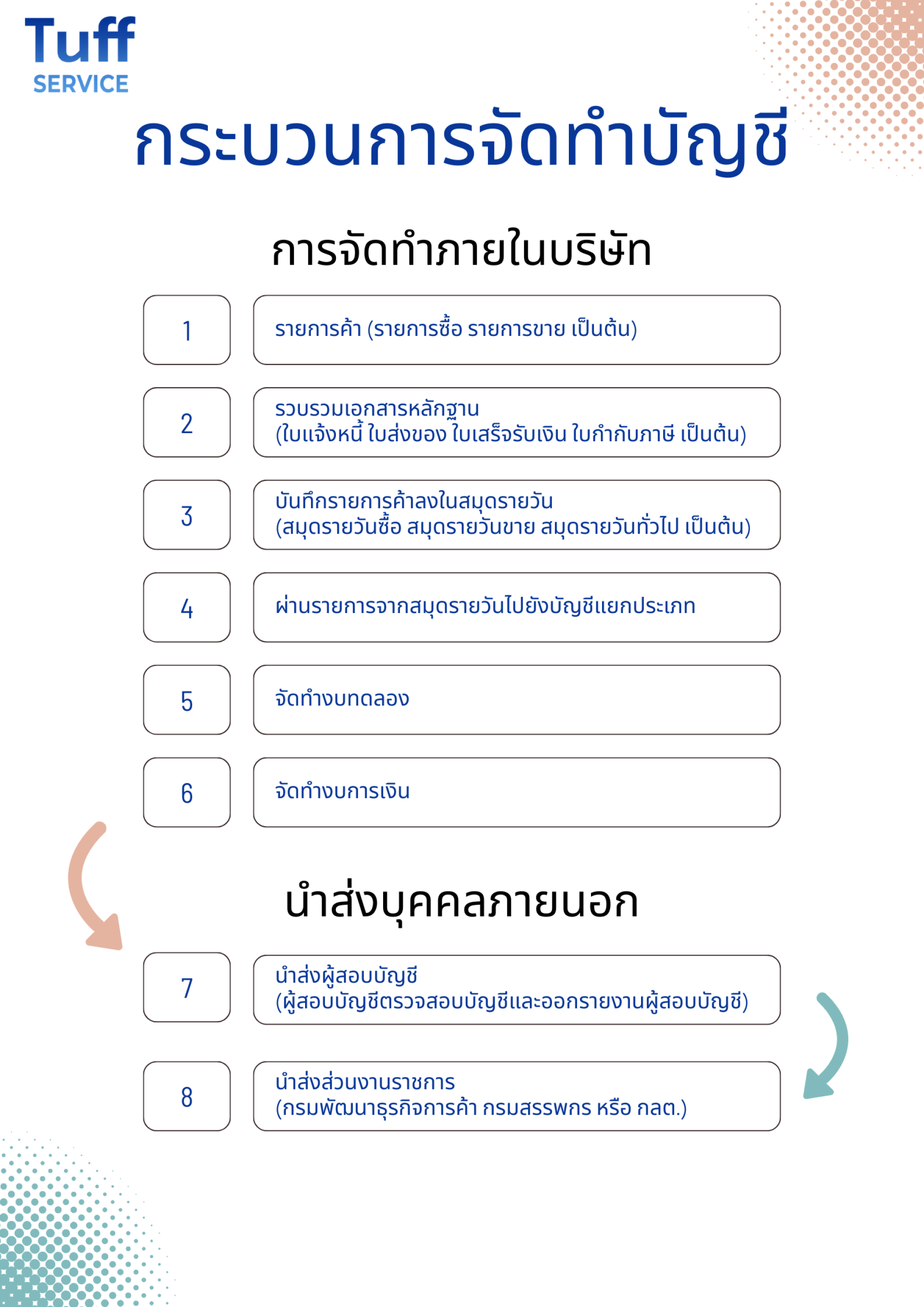 6) จัดทำงบการเงิน - งบการเงินจะเป็นข้อมูลเพื่อใช้ในการรายงานข้อมูลทางการเงิน